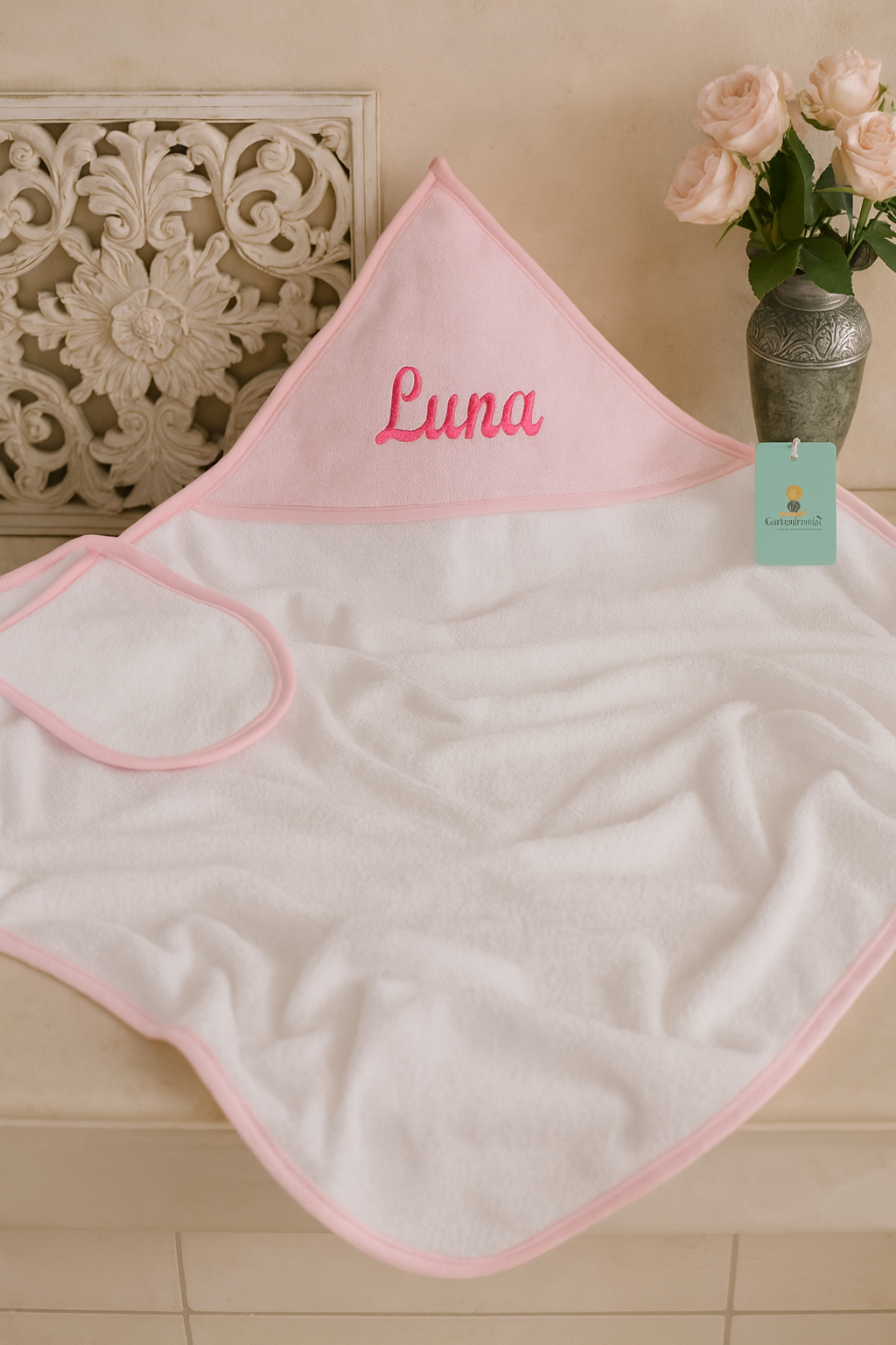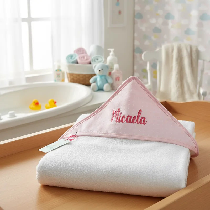 Nuestra toalla mide 80 x 80 cm, ideal para envolver a tu bebé después del baño con todo el cuidado que merece. Está confeccionada en felpa de algodón puro, lo que asegura una absorción superior, suavidad delicada y resistencia en cada uso.