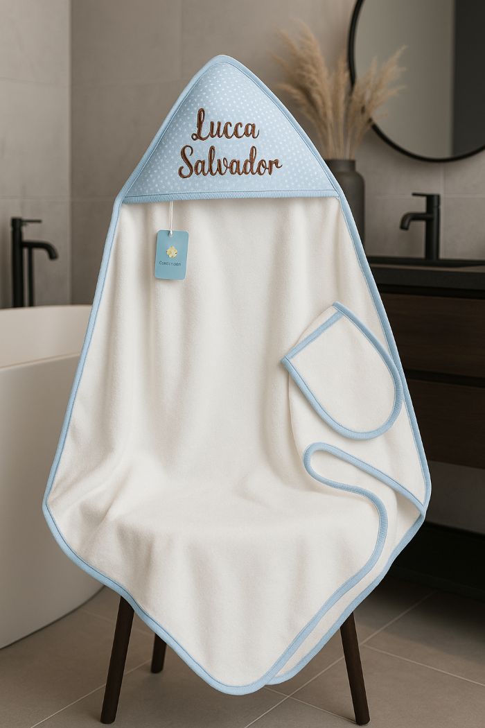 Nuestra toalla mide 80 x 80 cm, ideal para envolver a tu bebé después del baño con todo el cuidado que merece. Está confeccionada en felpa de algodón puro, lo que asegura una absorción superior, suavidad delicada y resistencia en cada uso.